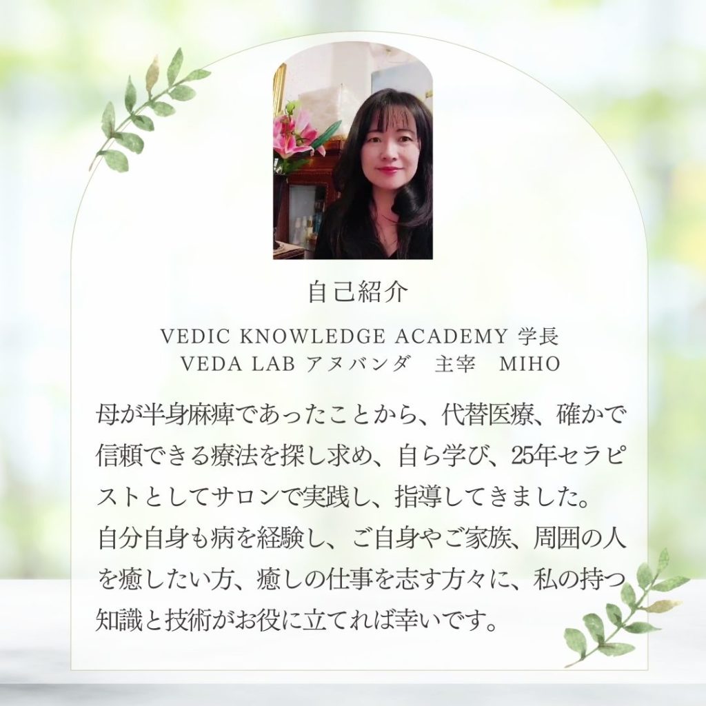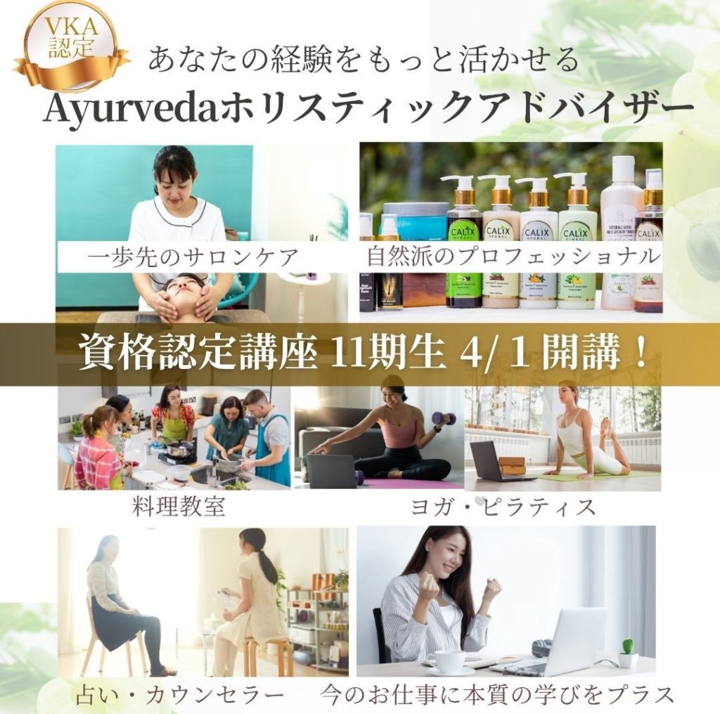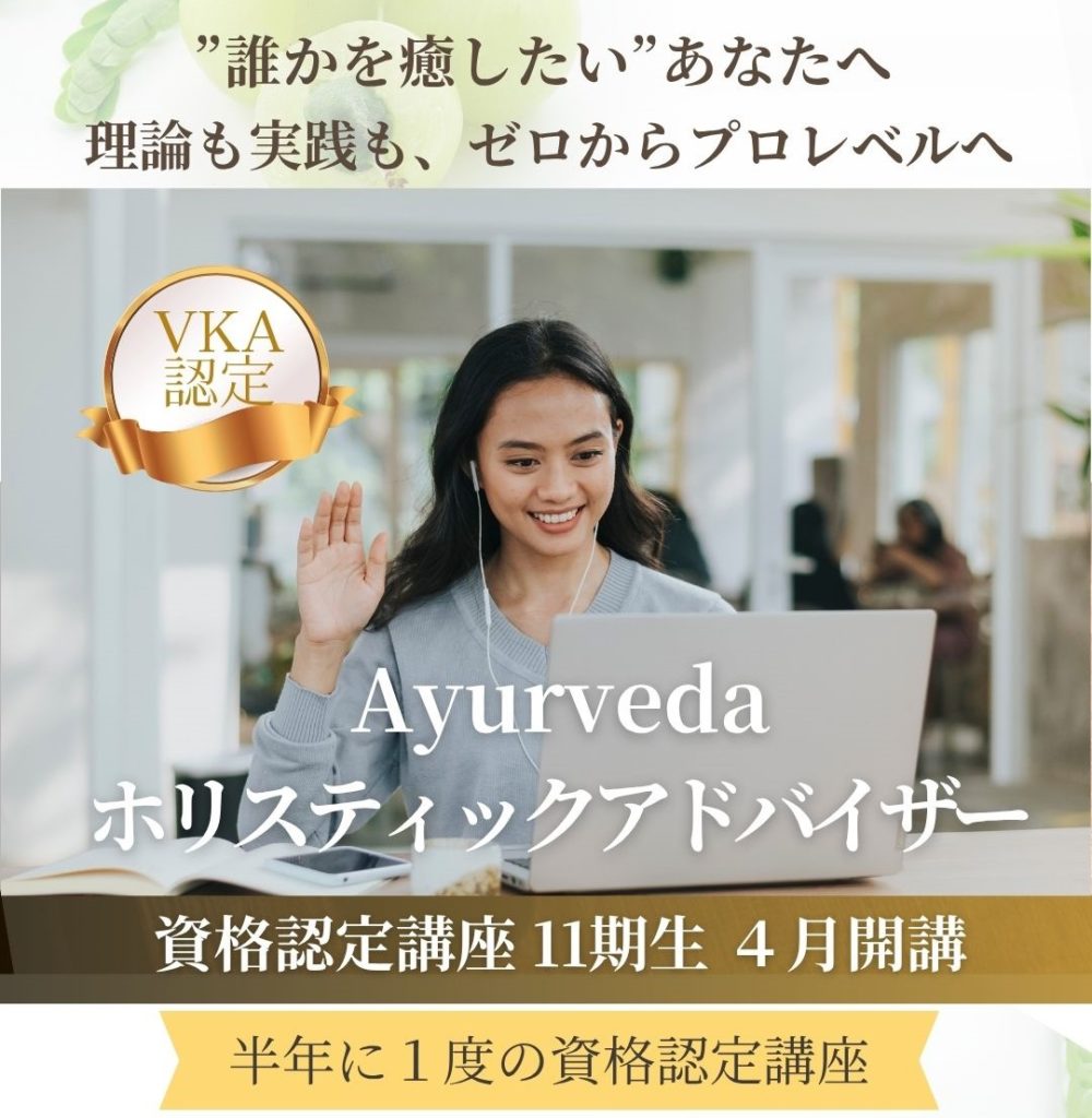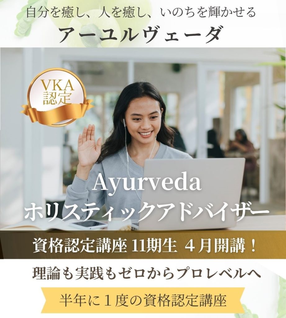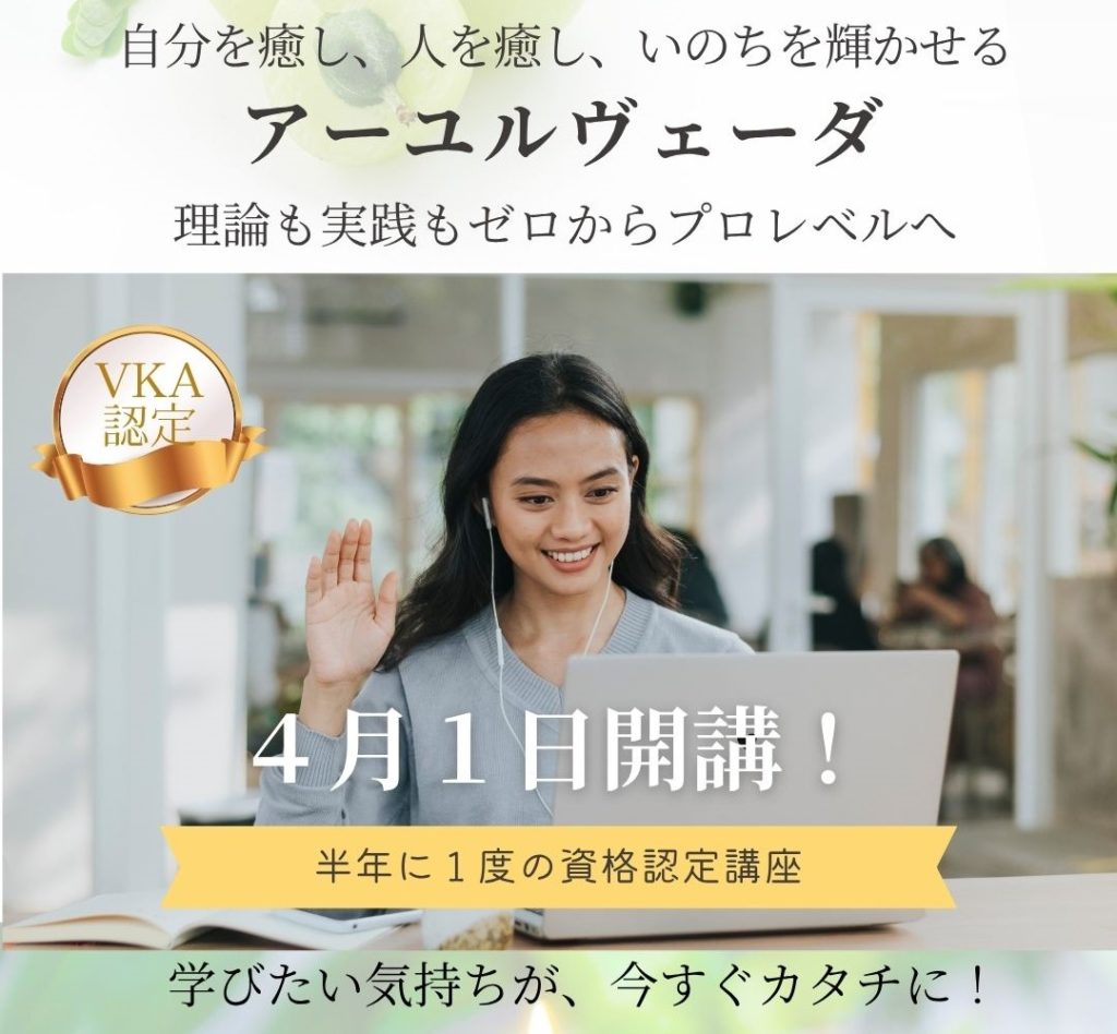 アーユルヴェーダオンライン・通信講座本場インド+日本人向け アーユルヴェーダ アーユルヴェーダが初めての方に 初級講座 自分と家族の体質を知り暮らしを整える アーユルヴェーダの歴史や基本概念、ドーシャ理論などを、楽しく、わかりやすく学べる入門講座です。日々…
