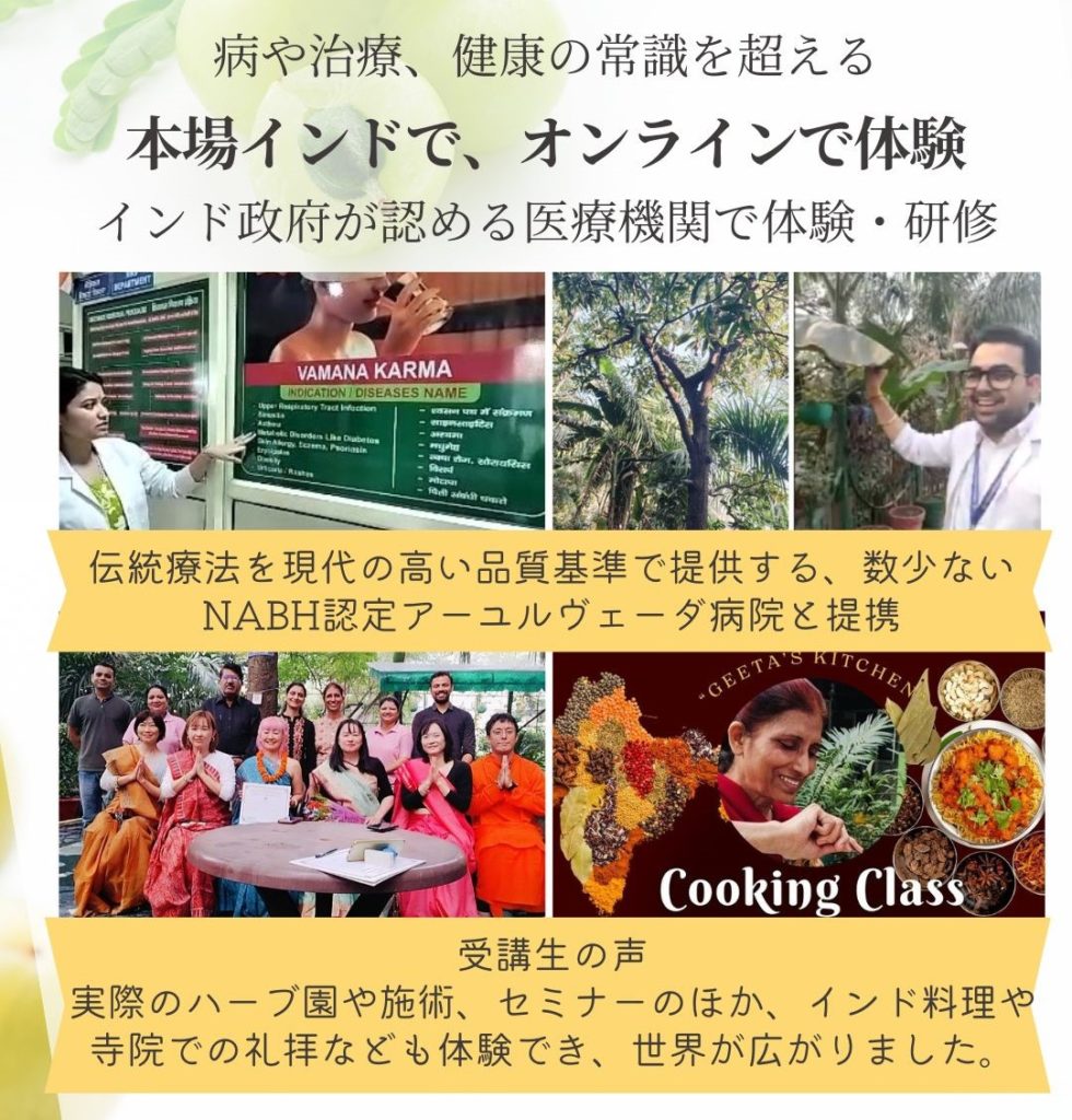 以下のアーユルヴェーダ講座受講で