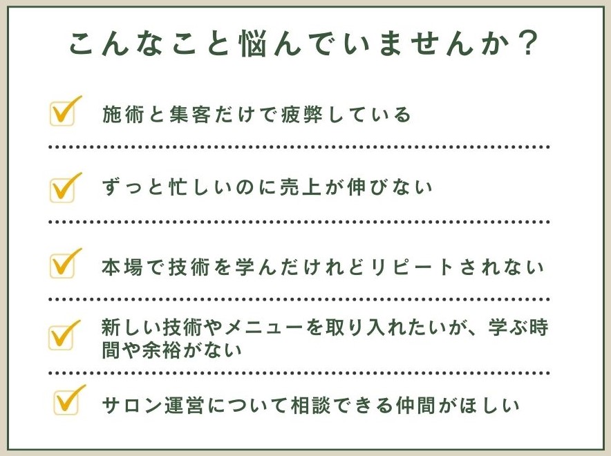 メニュー開発や集客に追われるサロン運営から解放。