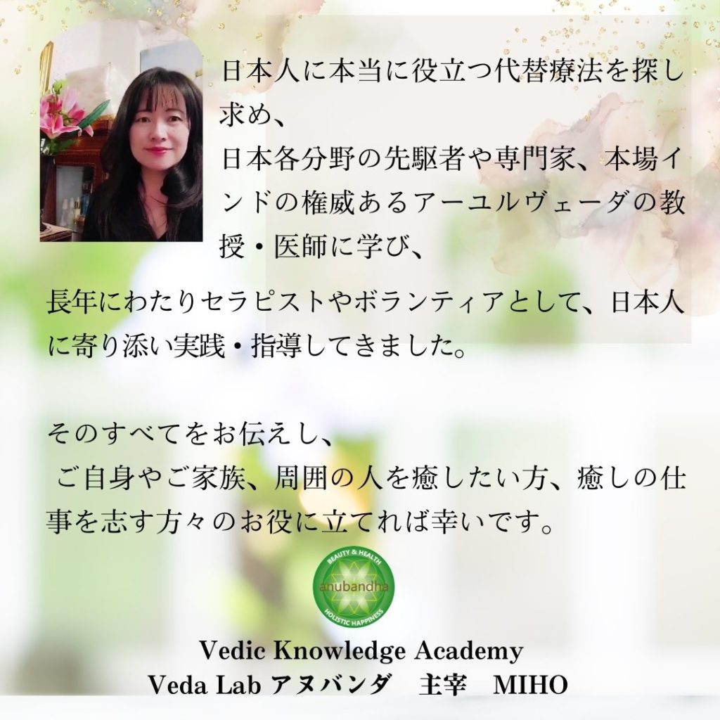 Ayurvedaホリスティックアドバイザー養成講座